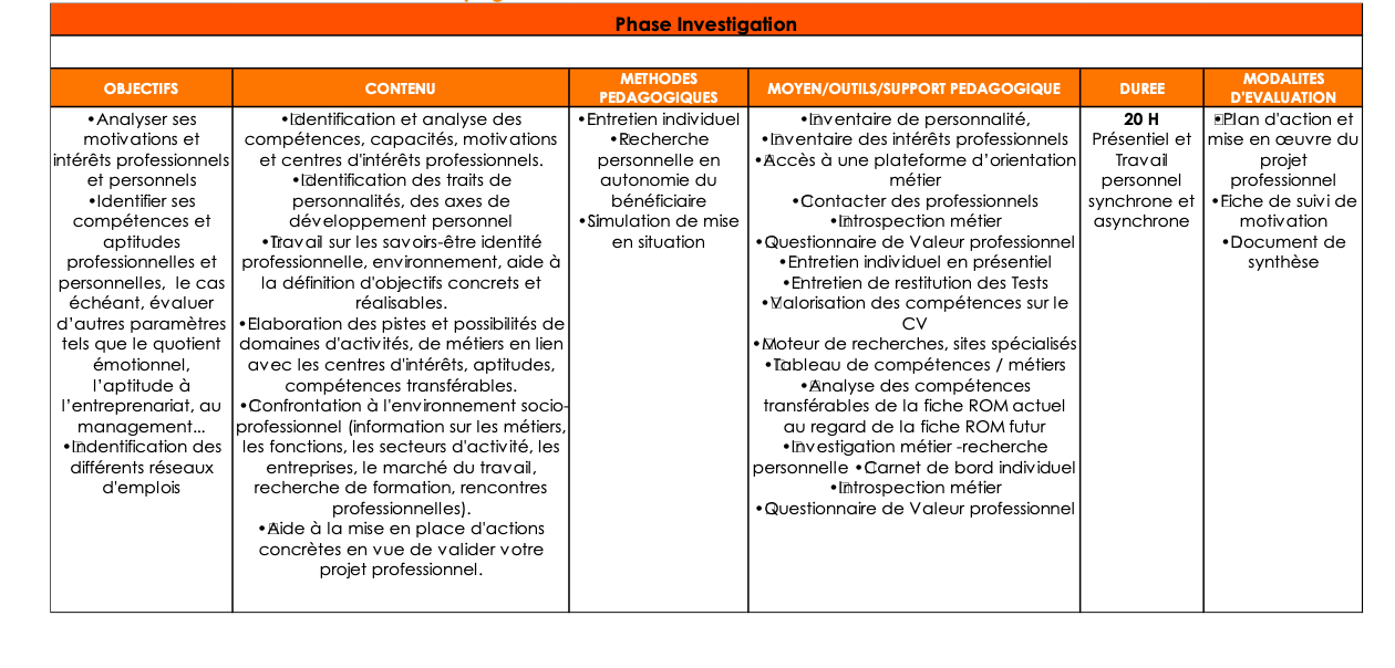 2° Une phase d'investigation permettant au bénéficiaire (20H)